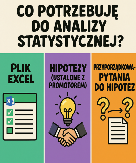 „Statystyk nie jest specjalistą w Twojej dziedzinie, dlatego nie może za Ciebie ułożyć hipotez badawczych. To zadanie najlepiej skonsultować z promotorem, który zna temat Twojej pracy. Z jednej ankiety można stworzyć naprawdę wiele hipotez, ale ważne jest, żebyś sam(a) określił(a), które z nich są dla Ciebie najważniejsze i pasują do tematu Twojej pracy magisterskiej.
